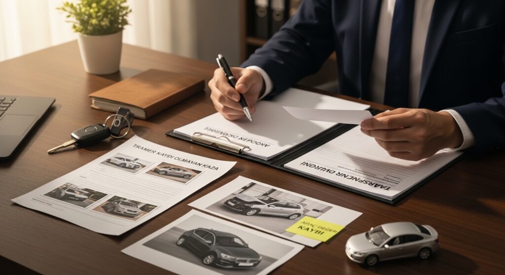 Tramer kaydı olmayan kazalarda en kritik belgelerden biri bağımsız veya sigorta eksperi tarafından düzenlenen ekspertiz raporudur. Ekspertiz raporu, aracın hangi parçalarının hasar gördüğünü, hangi parçaların değiştiğini veya onarıldığını ve hasarın teknik boyutunu ortaya koyar. Bu rapor, değer kaybı talebinin objektif bir temele oturtulmasını sağlar.